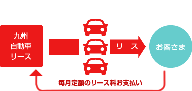お客さまが希望される車をリース会社が代わりに購入し、月々一定の料金で一定期間お貸しするシステムです。